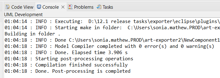Note: Before building the component, ensure that the compiler selected is compatible with the TargetRTS configuration. In many cases, the development environment for RoseRT may be using an outdated compiler. When transitioning to build the same component using Model RealTime, it's often necessary to update the development environment by switching to a more recent compiler version. For more information, see Post Migration Best Practices.