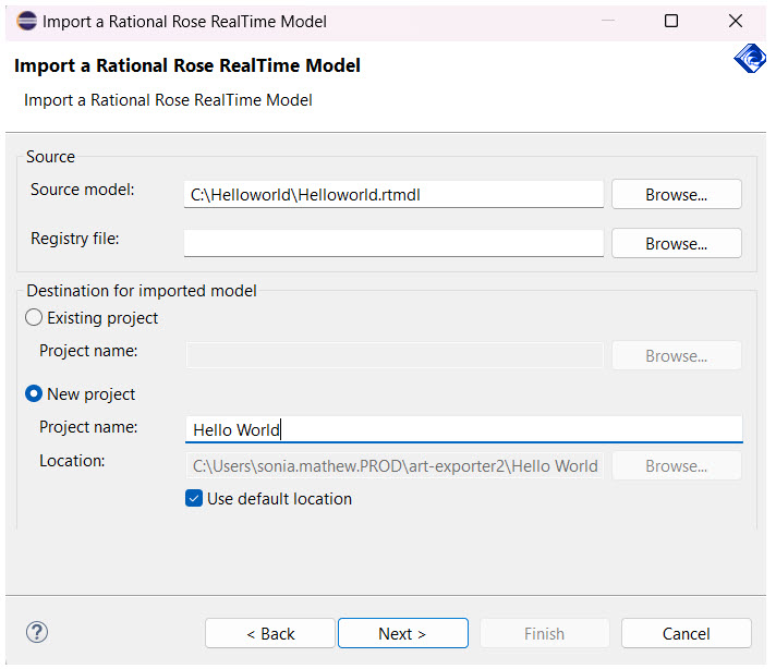 Browse to the location of the saved RoseRT model file.