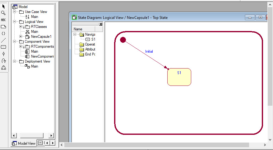 The imported state diagram should closely match what you saw in RoseRT (when you opened the model in RoseRT ):