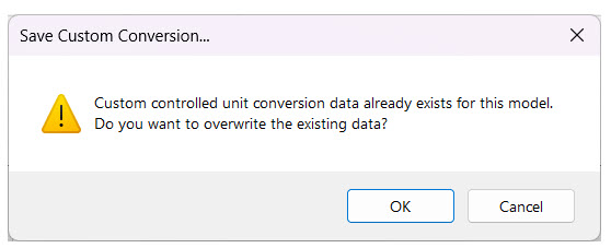 The "Load Custom Conversion" button is disabled unless a custom conversion configuration file exists in the workspace at the location specified above. When enabled, you can click this button to load the current settings into the dialog. A warning dialog will appear to ensure that you want to perform the operation.