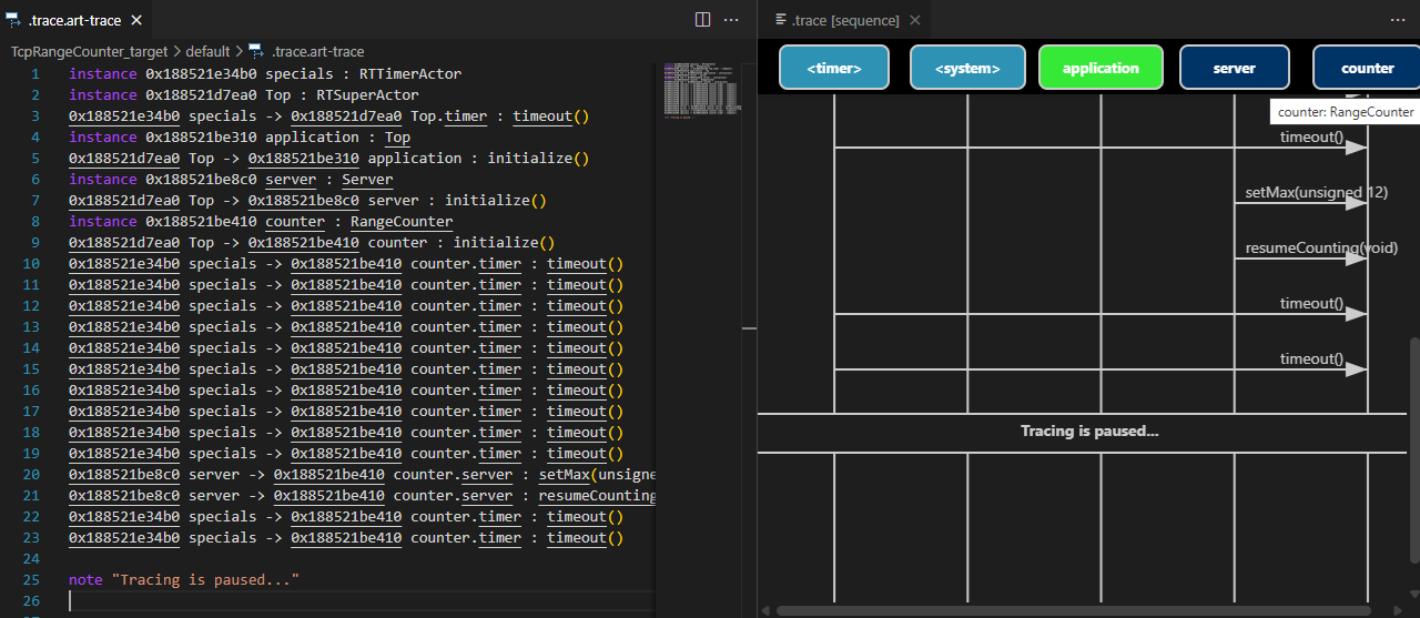files can be opened in Code RealTime to benefit from features such as syntax coloring and navigation. It's also possible to visualize such a trace file as a sequence diagram. Read more about this feature in the documentation.