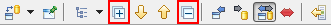 The next button is again a toggle, activating "Compare Mode". If it is down, certain double-click actions (see above) will open a compare editor instead of a normal editor.