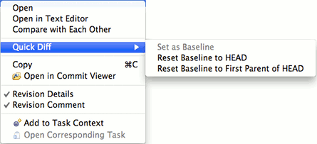 Menu entries in the History View's Quickdiff sub menu
