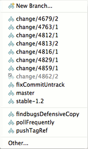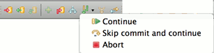 In order to ease use of the most frequently used Git actions the Git Command Group can be activated to show a Git Workbench Toolbar and/or Menu