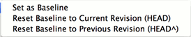 These two actions set the quickdiff basline for the repository to HEAD or to the parent of HEAD. These actions are always available, even if more than one commit is selected.